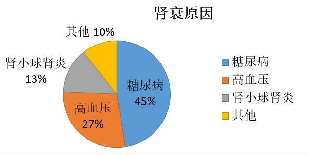 我国约有1.2亿成年人慢性肾病患者,患病率高达10.8%,其中45%由糖尿病引起,27%由高血压引起;6-18岁中小学生发病率达到4%-5%患有肾脏疾病。