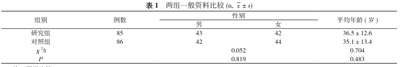 其中选取 85 例肾病患者作为研究组 ,另选取 86 同期健康体检肾脏系统检查正常的健康体检者作为对照组。