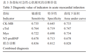 CK-MB、cTnI、Myo 和 NT-proBNP 联合检测在诊断急性心肌梗死中的应用》